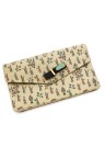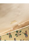 Pochette du soir rectangulaire en soie beige doré damassée à motifs d'inspiration persane en polychromie (musiciens, fruits et fleurs, cyprès, ...)