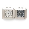 Boîtier rectangulaire, double cadran, fond fermeture à vis, signé