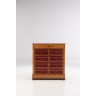 Cartonnier à huit rangements et un tiroir en placage de loupe d'orme et incrustation d'amarante à motif de rinceaux stylisés. Carton en maroquin rouge. H 120 cm environ. Epoque Charles X Expert : Monsieur Pierre François Dayot