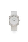 Boîtier coussin, lunette sertie de diamants, fond fermeture à pression, signé « Léonard »