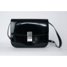 CÉLINE SAC "CLASSIC BOX" MM en cuir glacé noir, garnitures en métal argenté Env