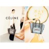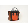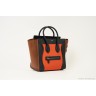 CÉLINE Sac "LUGGAGE" en cuir grainé corail et lisse marine, noisette, garnitures en métal doré