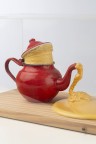 Métal émaillée rouge, mousse polyuréthane, socle en bois dans un emboitage de plexiglass