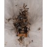 Collage de boîte d'allumettes et allumettes calcinées et suie sur panneau