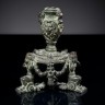 Chandelier en bronze ciselé à patine verte. Fût de forme balustre orné de trois cartouches à masque grimaçant avec col cantonné de volutes ; base circulaire à décor de feuillages supportant des guirlandes et reposant sur trois petits faunes assis, les mains placées derrière leur cou dans une position d'atlante. Italie du nord, atelier de Giuseppe de Levis, fi du XVIe siècle H 16,5 × L 14,6 cm