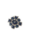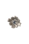 Broche en métal argenté, émail bleu ret strass Signée, gravée Made in Italy Dimensions : 6 x 6 x 1 cm