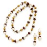 PARURE : SAUTOIR & CLIPS D'OREILLES composé de perles, certaines d'imitation, d'autres en métal doré godronné ou argenté, et pâte de verre rouge