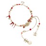 CHANEL - 1998 COLLIER en métal doré, perles d'imitation et de verre rouge, cabochons en résine, strass, sigles Siglé Long. Env. 48 cm - taille ajustable Quelques petits éclats sur nacre, manque cabochons et strass