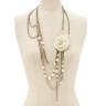 CHANEL - 2005 CEINTURE chaîne en métal argenté entrecoupée de perles de verre blanche et d'imitation, camélia avec sigle strassé