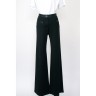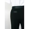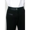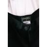 CHANEL - 2005 PANTALON en épais crêpe artificiel stretch noir, taille et poches soulignés de satin de soie, bouton siglé