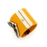 CHANEL - 2007 MANCHETTE en plexiglass curry, métal doré et résine, demi-perle d'imitation, fermoir siglé