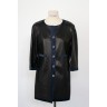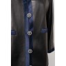CHANEL - 2007 VESTE 3/4 en agneau plongé noir gansé de satin de soie marine, quatre poches, boutons siglés en métal argenté torsade et résine T. 36 Quelques très légères rayures sur cuir