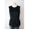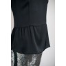 CHANEL - 2008 BLOUSE en satin de soie noir à effet de basque, deux boutons siglés en métal, les autres signés T. 38