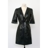 CHANEL - Automne-hiver 2006 VESTE 7/8 ème en agneau noir, quatre poches plaquées, plaque siglée en métal émaillé, ceinture lien