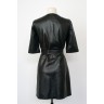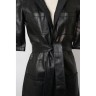 CHANEL - Automne-hiver 2006 VESTE 7/8 ème en agneau noir, quatre poches plaquées, plaque siglée en métal émaillé, ceinture lien T. 36 Petite salissure sur doublure, quelques très légères rayures sur cuir Iconographie : droits réservés