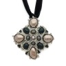 CHANEL - Automne-hiver 2008 PENDENTIF en métal canon de fusil, pâte de verre métallisée, résine et émail noirs, ruban de velours noir