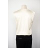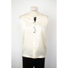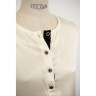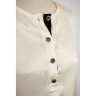 CHANEL BLOUSE en satin de soie stretch ivoire, boutons en métal canon de fusil strassés et rehaussés de cabochons en pâte de verre T. 38