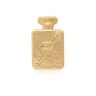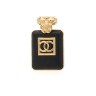 CHANEL BROCHE flacon de parfum en métal doré et cuir noir ornée du sigle et d'un camélia Siglée au dos Env. 5 x 3,5 cm Micro marques sur cuir
