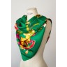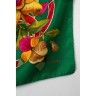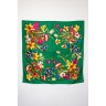 CHANEL CARRÉ en satin de soie imprimé à décor de sigles et de fleurs sur fond vert Signé Env 100 x 100 cm Parfait état