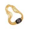 CHANEL CEINTURE composé de cinq rangs tubogaz en métal doré, boucle siglée en plexiglass noire Env. 70 cm Un motif gravé "S" sur intérieur, quelques rayures sur boucle