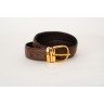CHANEL CEINTURE en cuir chocolat au lait façon crocodile, boucle en métal doré signée Signée Env. 100 cm Légère patine et quelques petites marques sur cuir