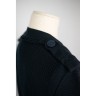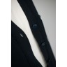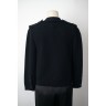 CHANEL - Circa 2003 VESTE en tricot de coton fantaisie marine rehaussée de petits galons festonnés, pattes d'épaules, boutons siglés en métal T. 36