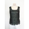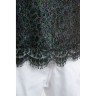 CHANEL HAUT DU SOIR en guipure de coton et viscose métallisé vert et violine sur fond noir, plaque siglée en métal canon de fusil au dos T. 36