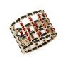 CHANEL MANCHETTE à décor de chaîne quadrillée en métal doré entrelacée de cuir rouge et noir, deux sigles Diam. : env. 7 cm Haut. : env. 5,3 cm