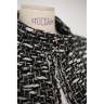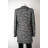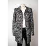 CHANEL MANTEAU 3/4 en laine mélangée fantaisie noir et écru, fermeture éclair, boutons siglés en métal argenté émaillé strassé, effet de galons effilochés, deux poches T. 36