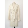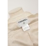 MANTEAU 7/8 ème en tweed fantaisie de polyamide, laine et soie jaspé noir et ciment, col, bas des manches et ourlet soulignés de chaînes en métal doré entrelacées, boutons siglés en métal, doublure en soie façonnée à décor des camélias siglés