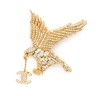 CHANEL - Printemps-été 2001 BROCHE aigle en métal doré strassé retenant une pampille siglée Signée Env. 7 x 9 cm Manque trois strass