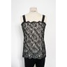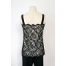 CHANEL - Printemps-été 2007 CARACO en guipure de coton mélangé noir, doublure en crêpe de soie écru, plaque siglée ajourée en métal argenté T. 36 Iconographie : droits réservés