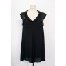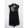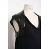 CHANEL - Printemps-été 2007 ROBE en crêpe de soie noir ornée de paillettes, effet d'encolure bénitier, tirette siglée en métal argenté T. 36 Manque quelques paillettes Iconographie : droits réservés