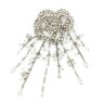 CHANEL - Printemps-été 2018 BROCHE camélia en métal argenté strassé retenant des pampilles ornées de petits motifs en verre transparent, certaines siglées Env. 19 x 7 cm Iconographie : droits réservés