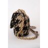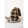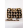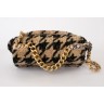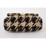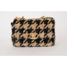 SAC "19" en tweed pied de coq noir et taupe rehaussé de lurex, garnitures en métal doré et canon de fusil, anse-poignée amatie entrelacée de cuir beige