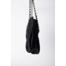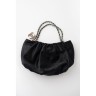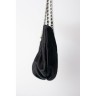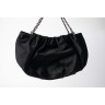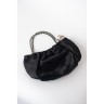 CHANEL SAC en satin noir matelassé, garnitures en métal chromé retenant une breloque siglée
