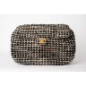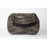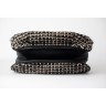 SAC en tweed noir, blanc et noisette rehaussé de lurex, passepoils et cuir noir sur les côtés, poignée chaîne entrelacée, garnitures en métal doré