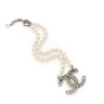 CHANEL TOUR DE COU composé de perles d'imitation et d'un sigle chaîne en métal argenté strassé Env. 21 cm - taille ajustable Manque un strass