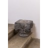 Chapiteau toute face d’applique en pierre calcaire sculptée, crosses et masques léonins. XIIIe siècle H 30×L 31 cm ( transformé en bénitier, accidents et manques à la partie inférieure)