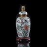 Chine Vase couvert en porcelaine à décor polychrome des émaux de la Famille verte d'oiseaux sur des arbustes et pivoines. Fin du XIXème siècle. Monté en lampe. H. 23 cm. Provenance : Succession de M D.
