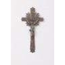 Christ de chevet en argent, la croix à motif rayonnant, le christ entouré d'un Titulus et de la Vierge Marie Travail probablement étranger Haut. 27 cm Poids : 237 gr.