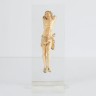 Christ vivant en ivoire sculpté. Tête tournée vers le ciel au regard implorant, cheveux retombant sur les épaules, périzonium aux plis mouvementés retenu par une cordelette laissant la jambe gauche découverte. XVIIe/XVIIIe siècle Hauteur : 16,3 cm Soclé sur plexiglas (Bras manquants, accidents aux pieds)