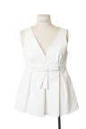 Top en coton texturé blanc, taille marquée avec noeud appliqué