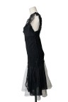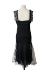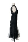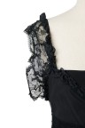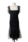 Robe à bretelles en soie noire drapée de dentelle noire