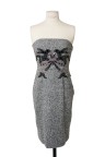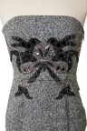 Robe fourreau bustier en laine texturée grise, plastron brodé de perles et sequins noirs T. 36 Excellent état général