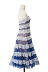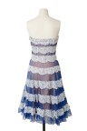 Robe bustier mi-longue en mousseline de soie bleu nuit brodée de larges bandes de dentelle blanc crème Coupe évasée T. 38 Bon état général