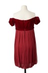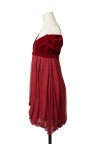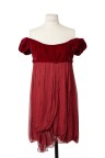 Robe babydoll en mousseline de soie rouge grenat, plastron en velours de soie rouge, manches ballons T. 40 Excellent état