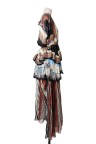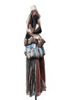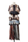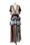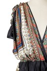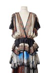 Robe en satin de soie imprimé cachemire, décolleté rehaussé de cabochons brodés en forme de clous Taille marquée de multiples franges T. 36 Excellent état général
