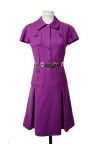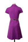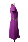 Robe en laine vierge violette Quatres poches plaquées à l'avant, ceinture en métal argenté T. 36 Très bon état général