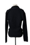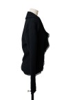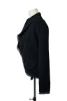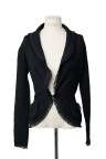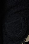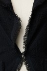 Gilet en lainage texturé noir, large col frangé, deux poches plaquées frangées également T. 42 Très bon état général